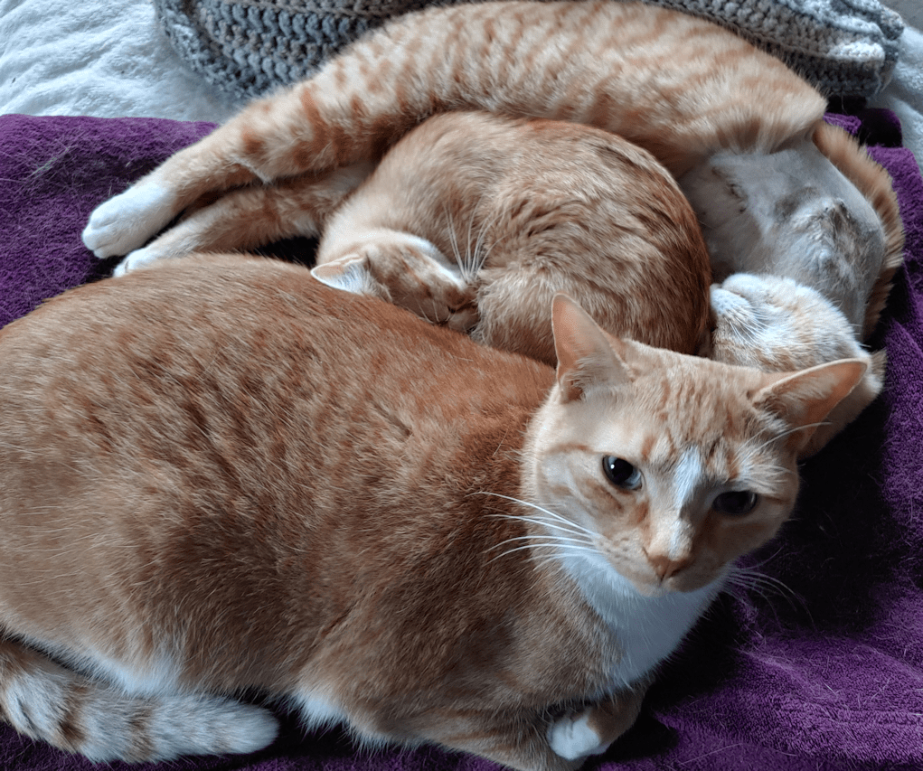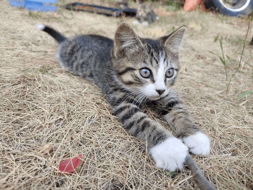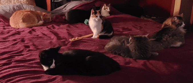 Then there are Junk Pile’s four, but when we see them, it’s usually in the form of a tornado of kitten, running away across the yard. Hopefully, they will start hanging around more.