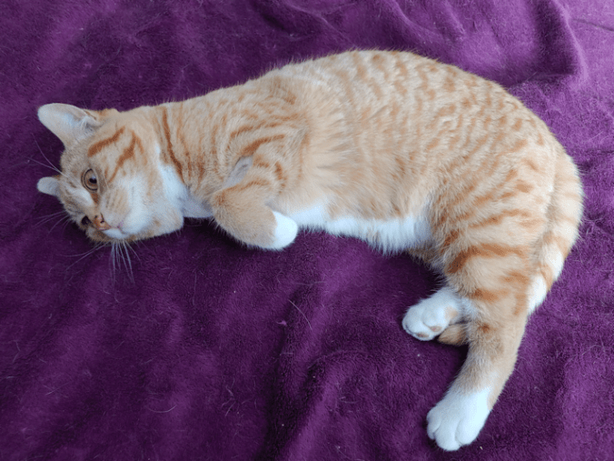 I wasn’t able to get a picture of her orange sibling, Toesencrantz, this evening.