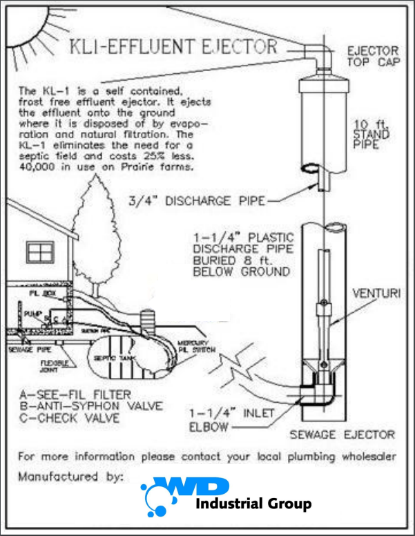 With our new ejector, it’s about 2′ above ground, so about 8′ is below ground. I think the original was more like 12′ based on how much more was above ground than the new one. The venturi pipe – the discharge pipe, in the diagram – should never stay full once the pump shuts off. Once installed, the venturi pipe can be (carefully!) removed and replaced, which is what we were supposed to do after using enough hot water to thaw the ice and free it.