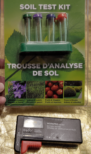 One of them was this soil test kit. We had looked for one last year, and they were completely out of stock all summer. I couldn’t find them anywhere! This has enough to do 40 tests, so we will be able to use it on different areas as we decide on where to plant. It tests the pH, which I already have a meter for that just needs to be stuck into the soil, but it also tests for nitrogen, phosphorus and potassium. That will be useful information.