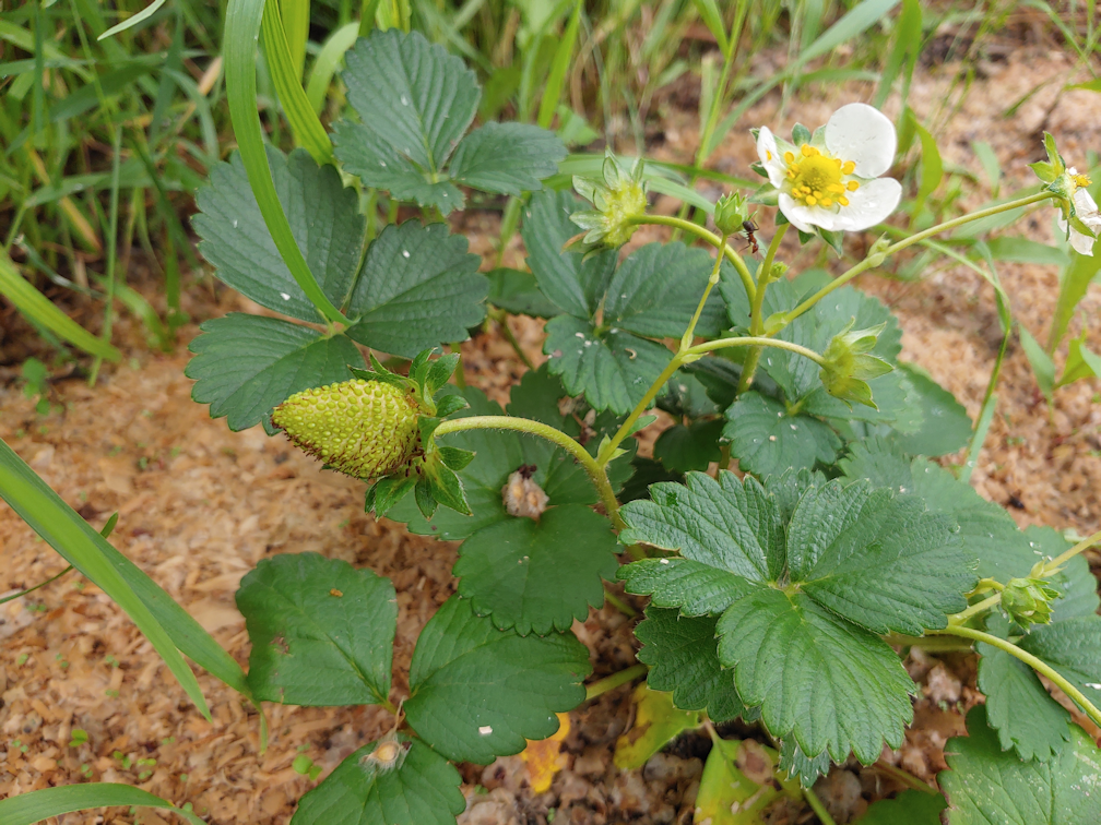 Our very first strawberries are forming! Yes, we’ve had wild strawberries before, but these are our first strawberries that we’ve planted ourselves.