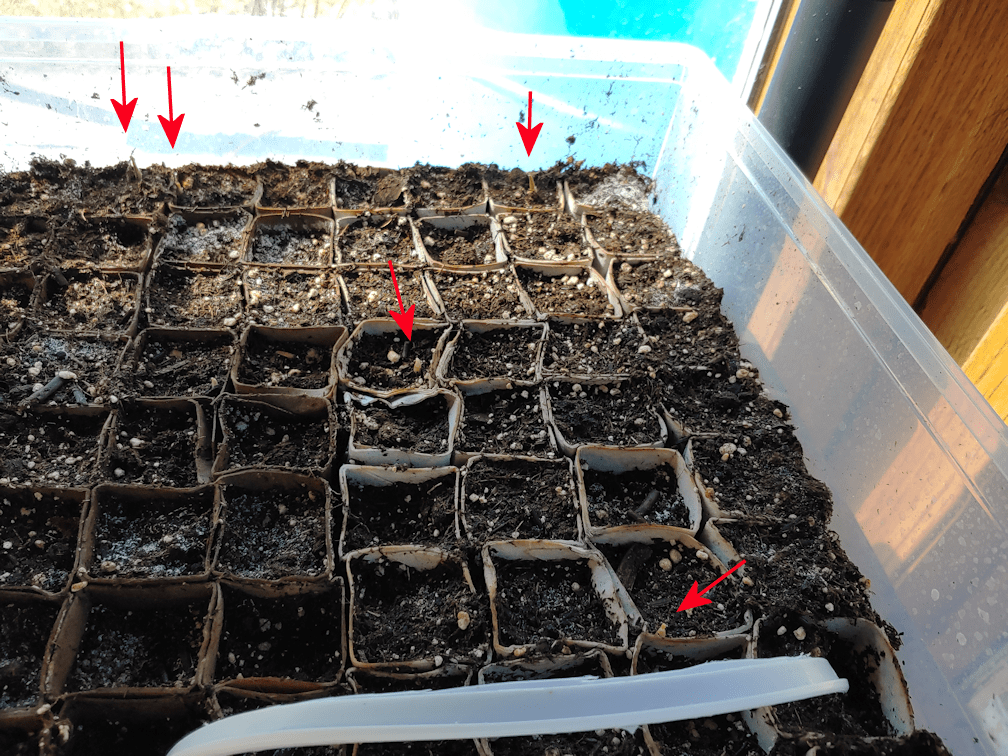 Pain levels were high for me this morning, so the girls took care of feeding the outside cats and setting the transplants out on the picnic table, under the old market tent and sheltered from most of the wind. Then my younger daughter did a fantastic job of cleaning up the branches from when I harvested trees for the permanent trellises we will be building. I just asked for the branches I tossed over the fence to the driveway side to be picked up, but she cleared away the big branch pile in the trees, too! Even sorted out longer pieces that we can potentially use, others suitable for the fire pit, and the rest went into the big branch pile we still have just outside the gate by the fire pit.