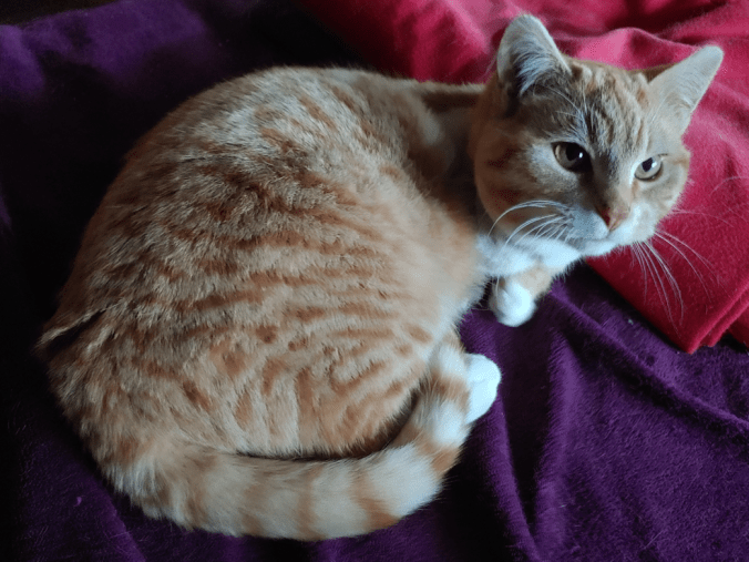 Potato Beetle is looking pretty battle worn! At least, with the cold, he’s been less aggressive towards the other cats, but clearly he hasn’t stopped completely.
