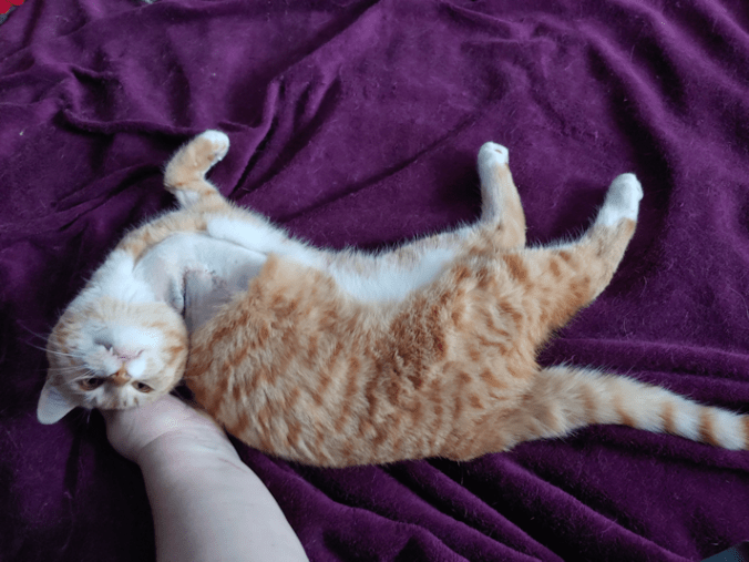 Ginger’s surgical site is looking really good and healing well. He displays no sign of pain or discomfort, and it’s not slowing him down at all. Which is starting to be a problem, as he is exploring more and trying to get into things he shouldn’t be! We’ve been able to train most of the cats to stay away from/off of certain areas and, of course, he hasn’t learned that yet. :-D