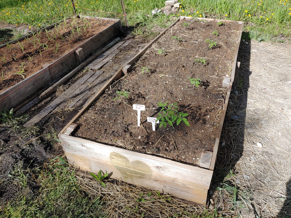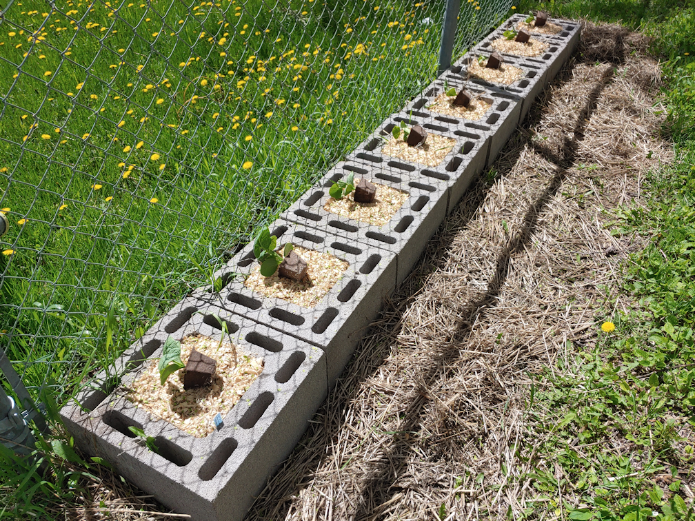 With how big they got, and how easily they fall over, though, I’m thinking we will want to add a support structure of horizontal wire mesh. Maybe two horizontal layers of them, with a mesh of about 4 inches square. That way, the plants can grow through the wire mesh, and still be supported during high winds, or when the weight of their own branches start pulling them down.