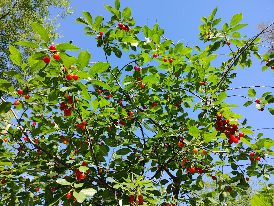 It has SO many apples on it, and they’ve turned such an incredible red colour. They are like beautiful ruby ornaments! The apples on this tree are not really edible – at least not for humans. The birds and the deer like them, though. The apples will be left on the tree to freeze. Every now and then, in the winter, I hope to be able to get to the tree to knock some of the apples down for the deer. Otherwise, they stand up on their hind legs to reach, and end up breaking branches.