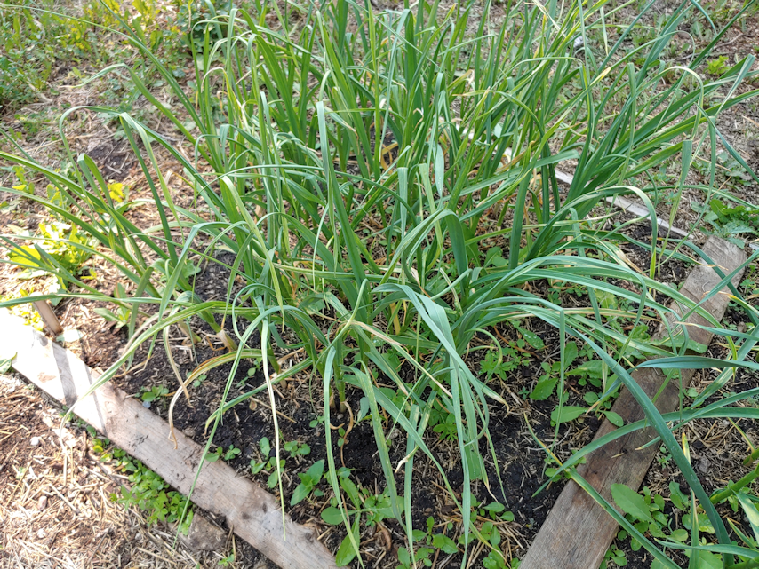 The Racombole got split between the two beds. They came up later than the others, and the plants are smaller and slighter. They were also the last to start producing scapes. I don’t know if that’s normal or not for this variety. It’s possible, being on the East ends of the beds, they had slightly less sunlight than the others.