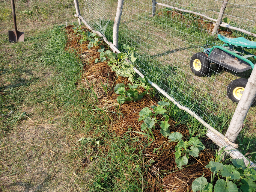 This area is temporary, even though we built a squash tunnel for them to climb. We intend to plant trees in this far-flung area, but this area, and the squash tunnel, might see another year of use. I’m pretty sure there is a telephone line buried under here, so we will probably not be planting trees exactly here.