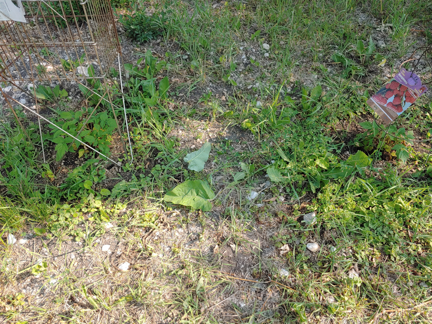They had been doing so well, until the woodchuck ate all the greens! The wire cover isn’t going to stop a woodchuck, but will hopefully at least slow it down or discourage it. I’m still holding out hope that they will recover, and will be spraying around them with repellent soon.