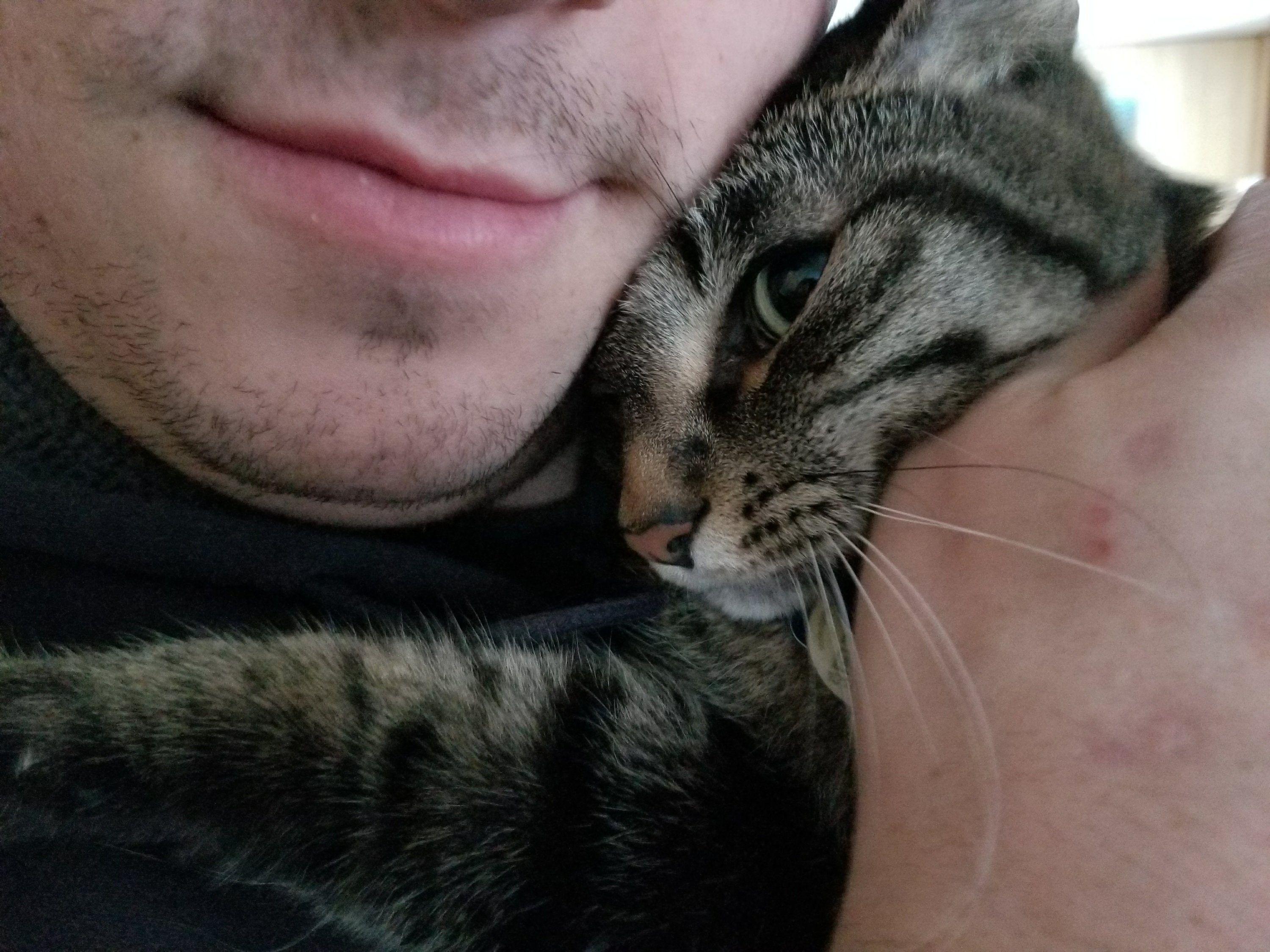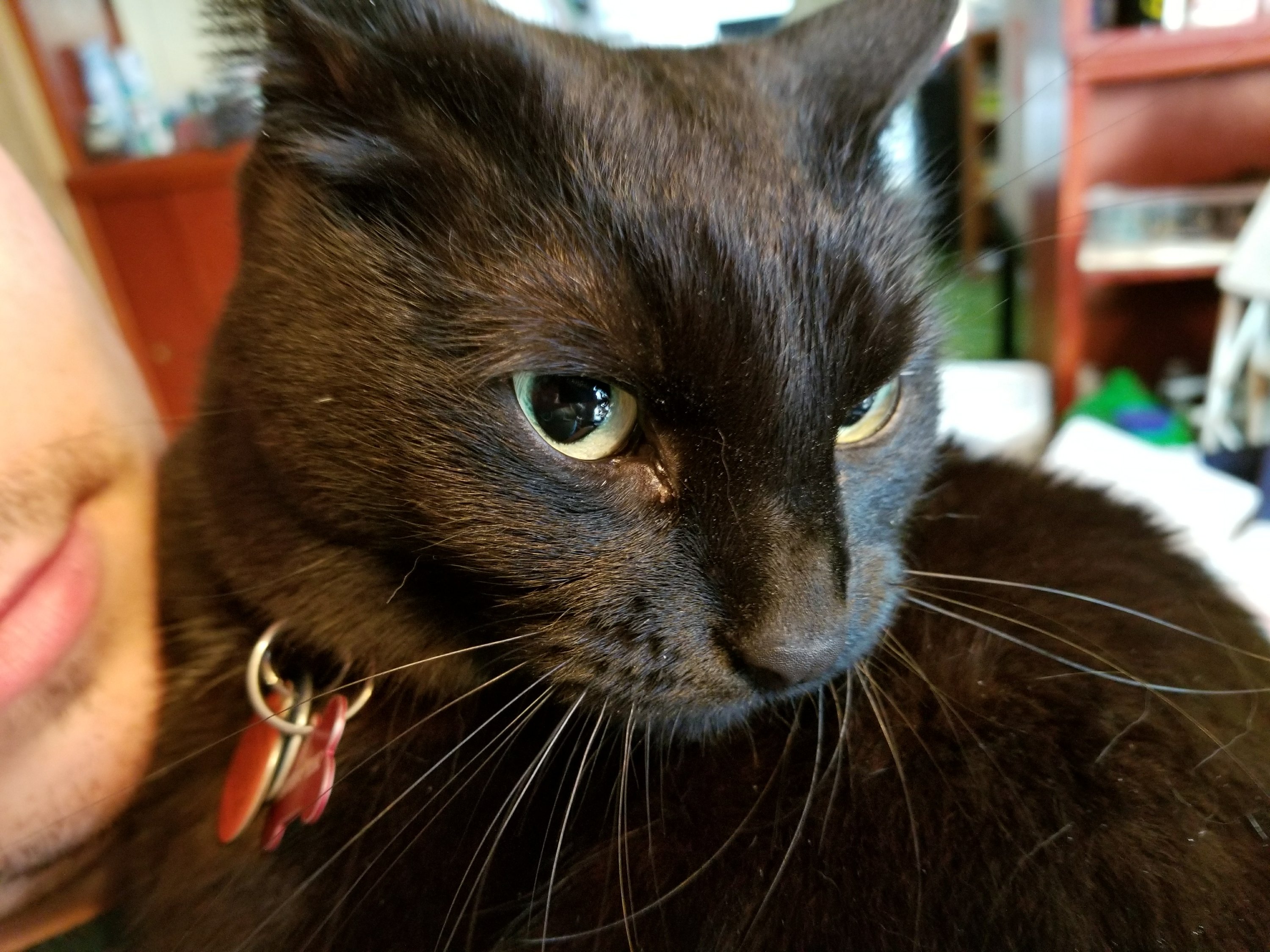 One of the cats, however, knows what’s going on when that phone comes out, and does NOT like getting her photo taken! Not even while getting cuddles.