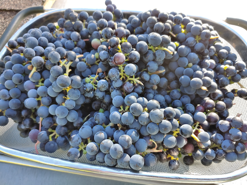 While checking the grape vines, I was on the lookout for more of those caterpillars, but accidentally knocked a big brown one onto the ground!