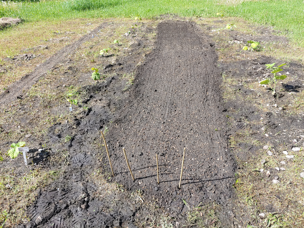 In the bed with the Black Beauty tomatoes, I planted one long row of Uzbek Golden carrots. There was only space for the one row, which I then covered with boards. I will check under the boards daily and remove them as soon as I see carrots sprouting.