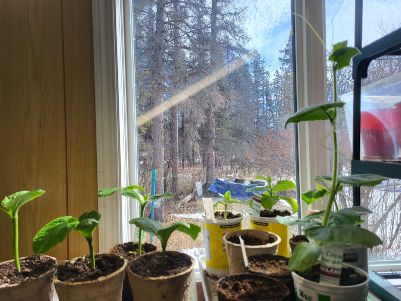 After this, the next things we might start indoors are some herbs and a few back-up White Scallop squash. Those can be started towards the end of April or beginning of May. I’m hoping we’ll be able to start using the portable greenhouse at around the same time. It really depends on those overnight temperatures inside the greenhouse, as we have no way to heat it. We won’t have the option to use the sun room this year, as the space is pretty much all set up for the cats now!