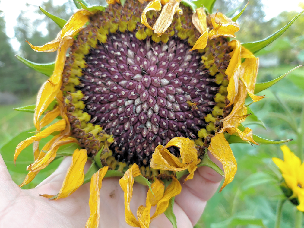 We have had enough rain that even the grass has come out of dormancy and had started to grow again. We might even have lawn to mow, instead of having just a few patches growing. The overgrown area where the old garden used to be is going to need cleaning up soon. I’d left the alfalfa that was coming up to bloom for any pollinators we might have – there’s a lot less these days, than in the spring, probably because of all the smoke. Their bloom time is ending now, and the burdock is starting to get big, will start flowering soon, so we need to cut all that back before the burrs get too nasty. We might be able to start on that tomorrow. Depending on how things go today, I should be able to go in with the loppers and cut back the poplars saplings that are trying to take over.
