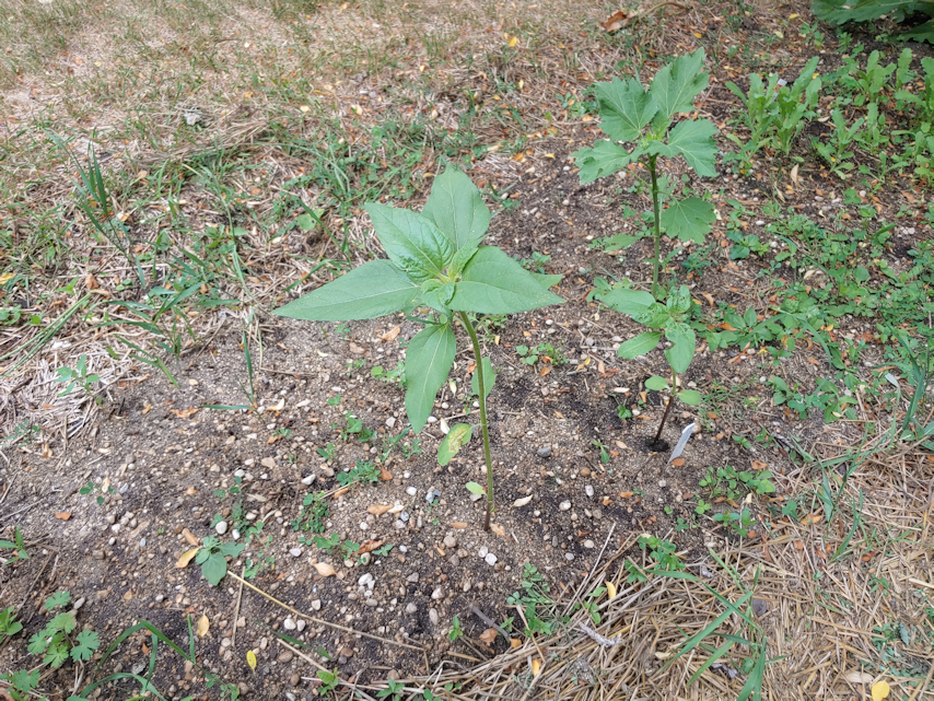 Meanwhile, our recent rains have given us more sunflowers. Sort of.