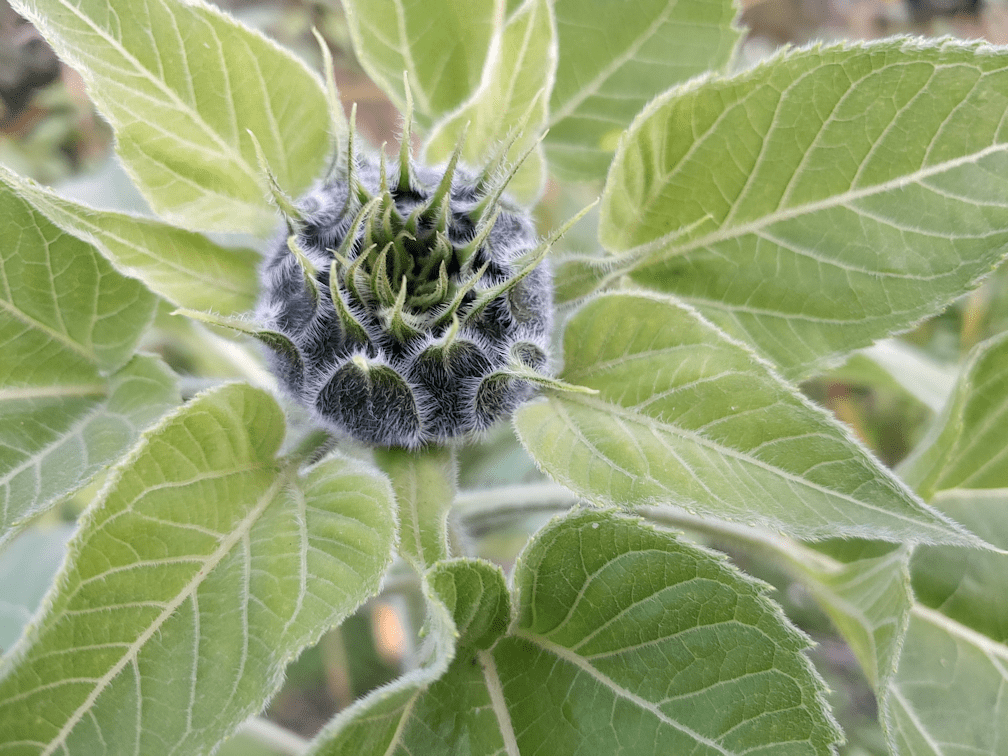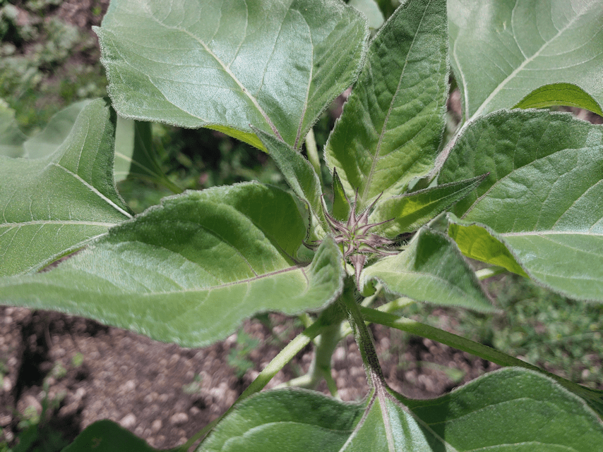 The sunflowers are also not anywhere near as tall or robust as they would be. Especially the Mongolian Giant sunflowers. They and the Hopi Black Dye sunflowers, pictured above, are basically the same size. Only the ones that got started indoors and transplanted are slightly taller. All of them have very thin stems, still. As you can see in the photo, however, they are starting to grow their flowers! I don’t expect them to reach full size, but I do hope we at least get some of the Black Dye sunflowers reach maturity.