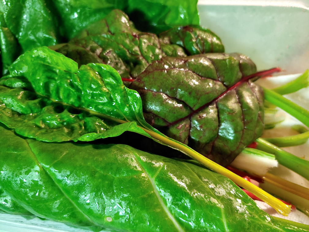 While checking the garden beds, the girls gave me a hand moving one of the mesh covers so we could collect our very first chard leaves!