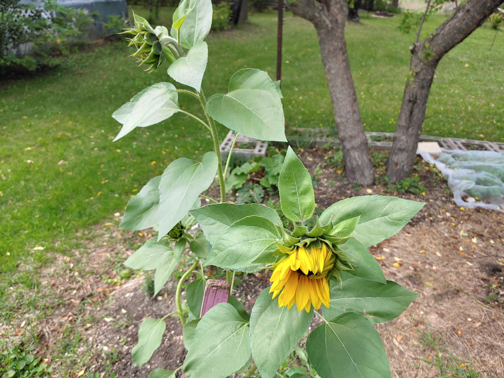 As for the tall plant behind the smaller sunflower, we still don’t know what it is. :-D