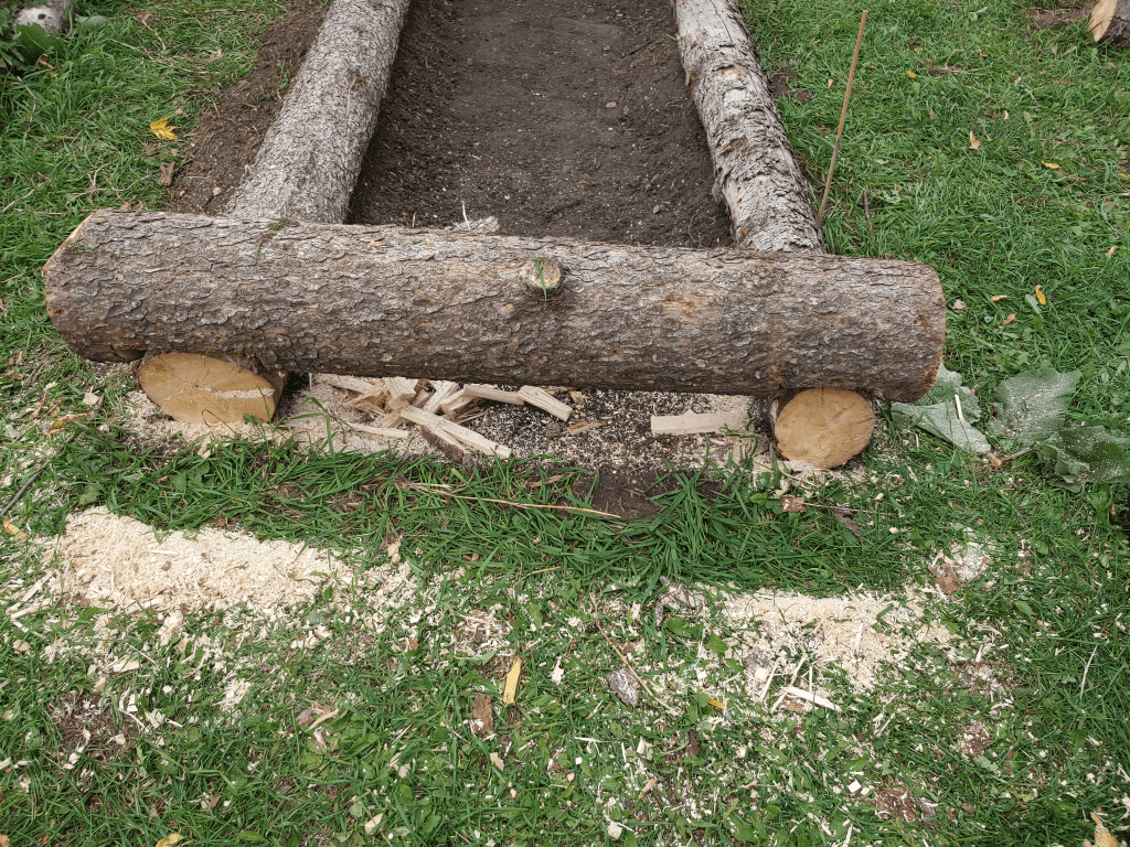 Once that was done and everything was put away, I headed to the finished high raised bed, to start filling it, modified hügelkultur style.