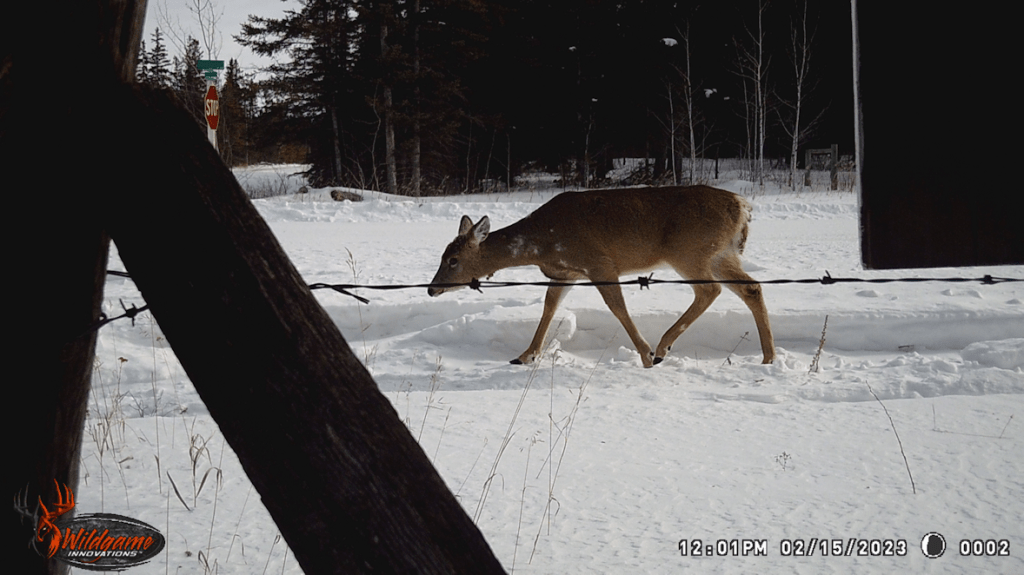The critters much prefer the paths humans have cleared, including the trailed packed down by snow mobile-ers! This piebald seems to be the only deer that is visiting us regularly this winter, even though we’ve stopped putting food out this year, to raid our compost pile.
