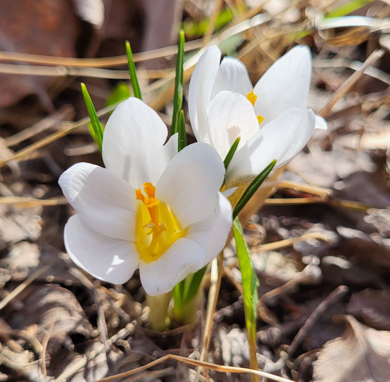 There are quite a few crocus buds popping up, and we’re also seeing lots of grape hyacinth greens emerging! Too early for the flower stalks to start forming, but the leaves come up in distinct little clusters that are easy to identify, compared to the grass and weeds that are in the same area. I’m looking forward to when the crocuses and hyacinths spread enough to start choking out the weeds and grass where they’ve been planted!