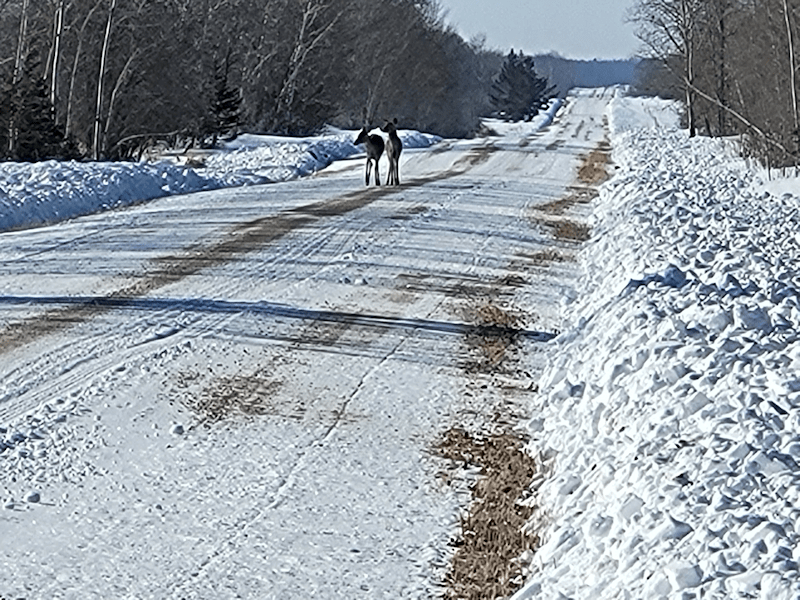 It turned out to be a pickup truck with a plow attachment. It’s one I recognize and see every winter, but I’ve never been able to see the driver’s face. I had no idea who it was. Also, it was done in the early afternoon! We were busy making our dinner at the time. On the trail cam, I could see the truck go by and stop on the road, then back up to our driveway and go in, then out again – just two quick passes to widen our driveway. Normally, we would have had the gate closed and locked, but with this weather, we’ve been leaving it open. He basically took advantage of that!