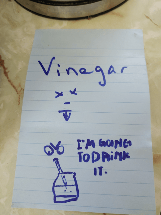 With that in mind, when I started the process, I make a sticky note to leave on the counter for the other household members to know what was in the kettle.