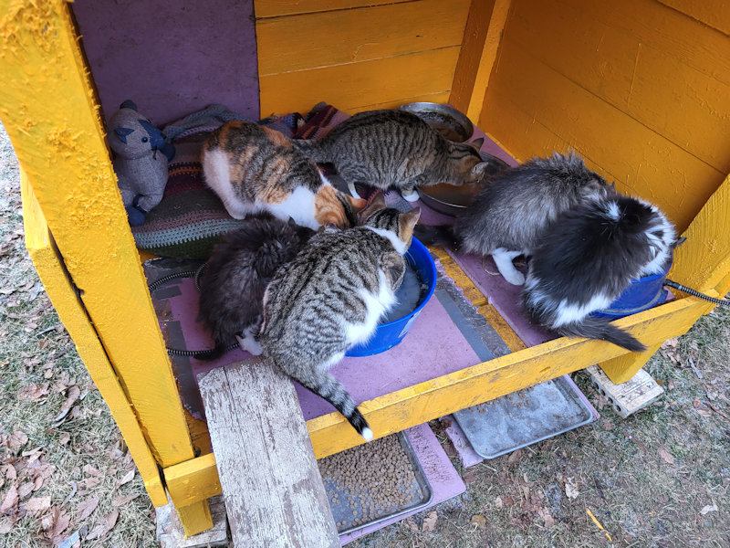 As much as the yard cats were after the food this morning, it was the water they were really excited about!
