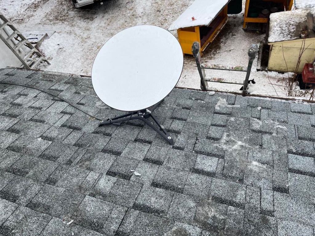 My brother sent me a picture of Dishy – after he secured it to the roof! It was held by only one screw. We figure they lost the other two while working around it.