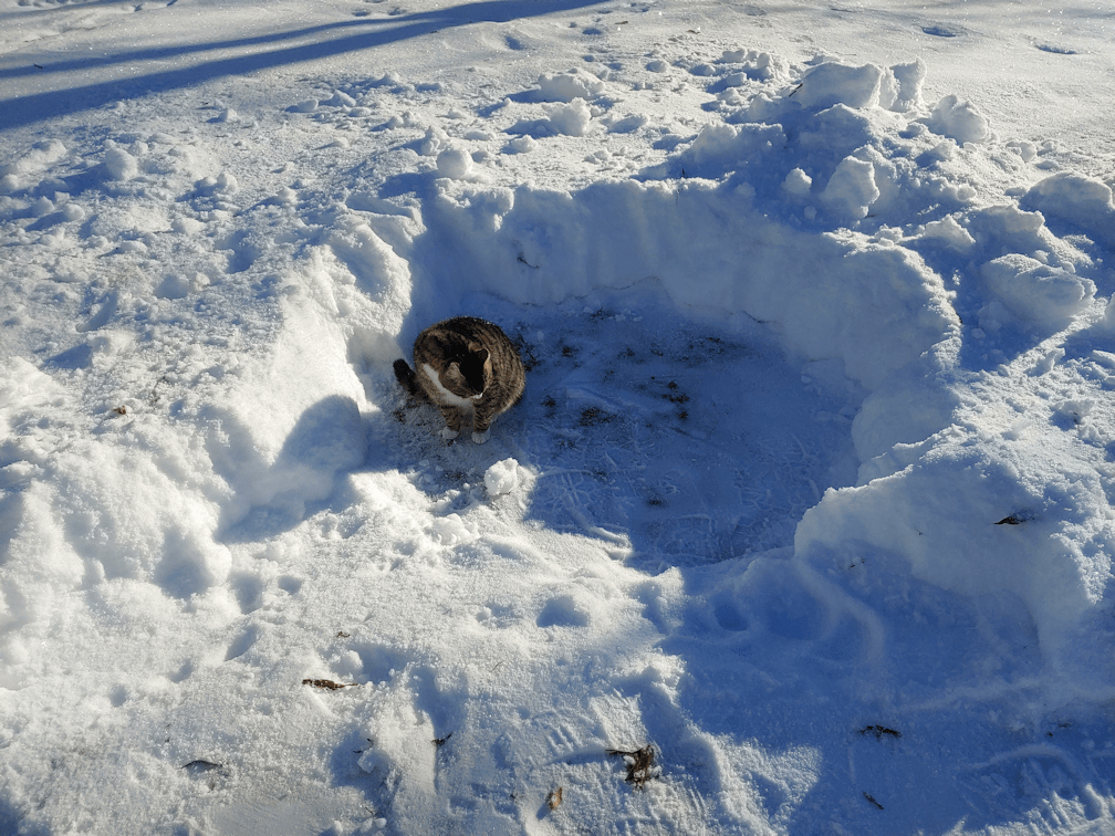One of them is more feral and ran off when I stopped to get my phone out, but Kohl is looking like she’s settling right down for a nap!