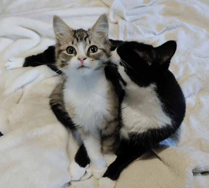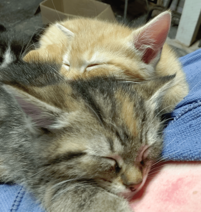 It started with Leyendecker and Saffron. They climbed up on me and played for a while, then settled down for a nap.