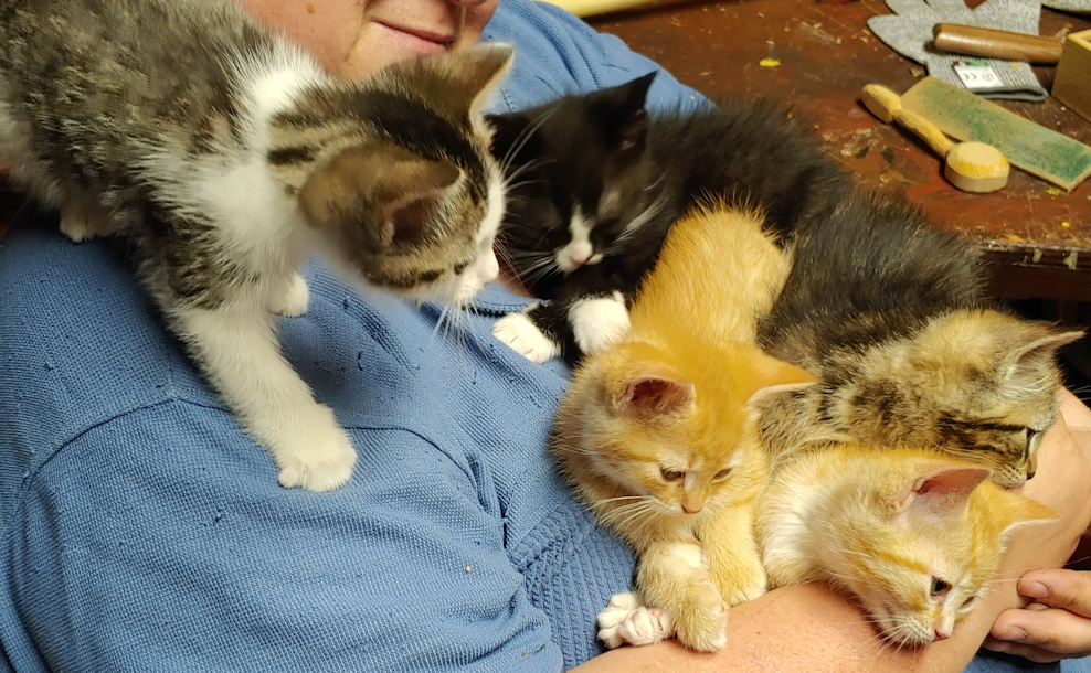 It took quite a while to extricate all the cats, but we managed to do it without shredding my clothes too badly, nor adding any new scratches.