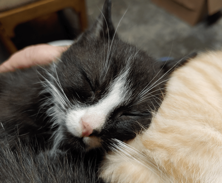 At some point, I felt a kitten clamber up my leg and settle on my lap. That left some damage!! It turned out to be Nicco.