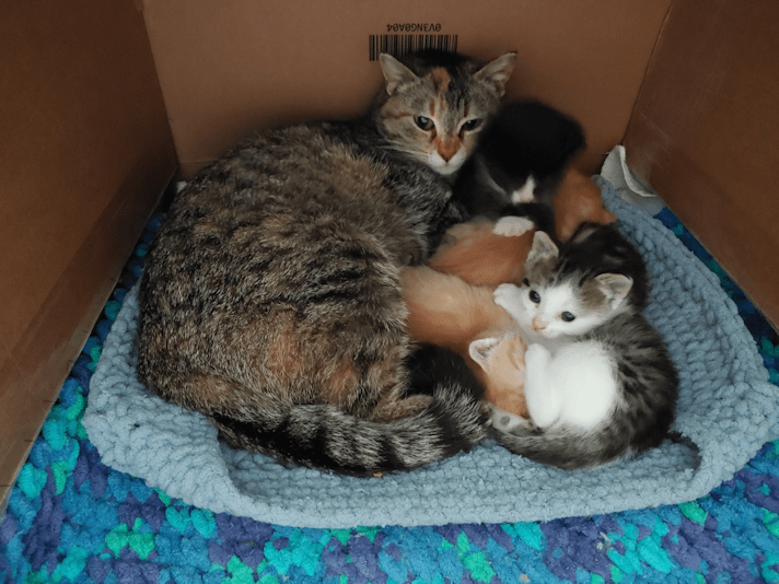 They are quite liking the new set up. The kittens will wobble their way all over, then go back to their little bed for cuddles with Mom.