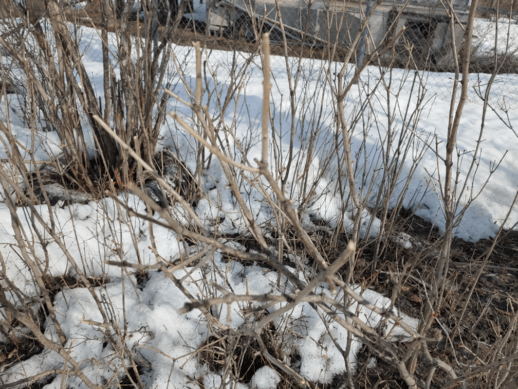 Enough snow has melted that I can get into areas we haven’t been able to reach all winter. That gave me a chance to go into the old kitchen garden and free the top of a lilac branch that was still stuck in the snow.