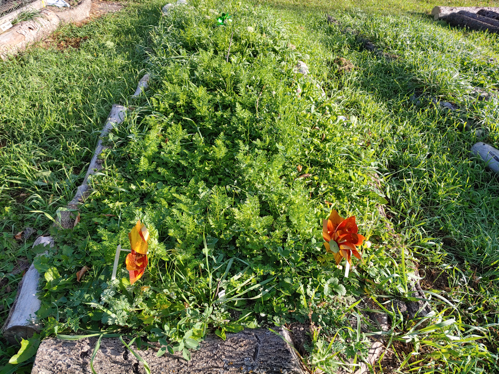 The second sowing of spinach was a complete fail! The first section that got planted had started to germinate, but the kittens flattened the protective cover and rolled all over them. They never recovered.