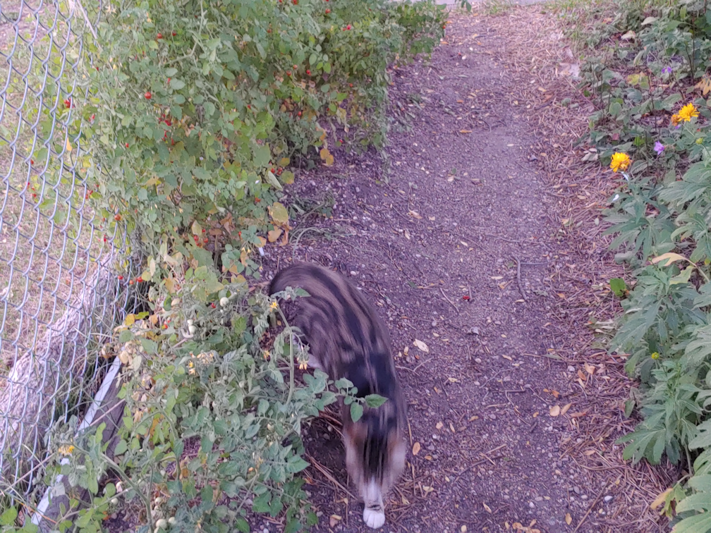 So the watering is finally done for the day, and I’m taking a break. I’d like to get a bit more work done on the cat isolation shelter today, but it’s starting to get late. It might have to wait until tomorrow.