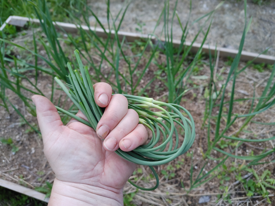 I also found new onions growing among the ones from previous years we found and transplanted, to go to seed. The seed pods on those are still quite green, so they didn’t come from there – at least not that I can tell!