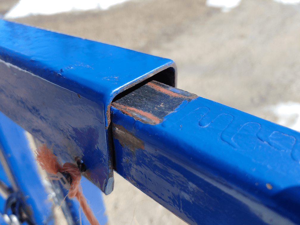 When my brother and I put the repaired gate back up, the two sides were even. That sliding bar holds the two sides closed, and I could put a pin through the pair of holes at the corner, which made sure the wind or whatever didn’t vibrate the bar off the end of the gate. Before winter, it was noticeably shifted, but we could still lift one side of the gate while pushing down on the bar and get the pin through. Now, it’s just too far off! We’ll have to come out with a level and see which gate post has shifted the most. I was thinking the north post was tipping away, but my daughters think the south post is tipping inwards. It could well be both. The gate posts were installed in such a way that they can be adjusted by adding washers to the bolts at the base. My brother had done that when he installed the new hinges that replaced the ones our vandal broke. I’d hoped it would be a few years longer before it had to be done again. It’s been about 3 1/2 years since these were repaired and replaced, so I guess that’s not too bad.