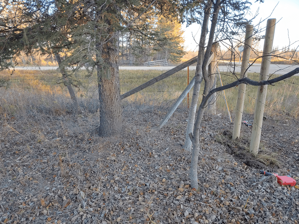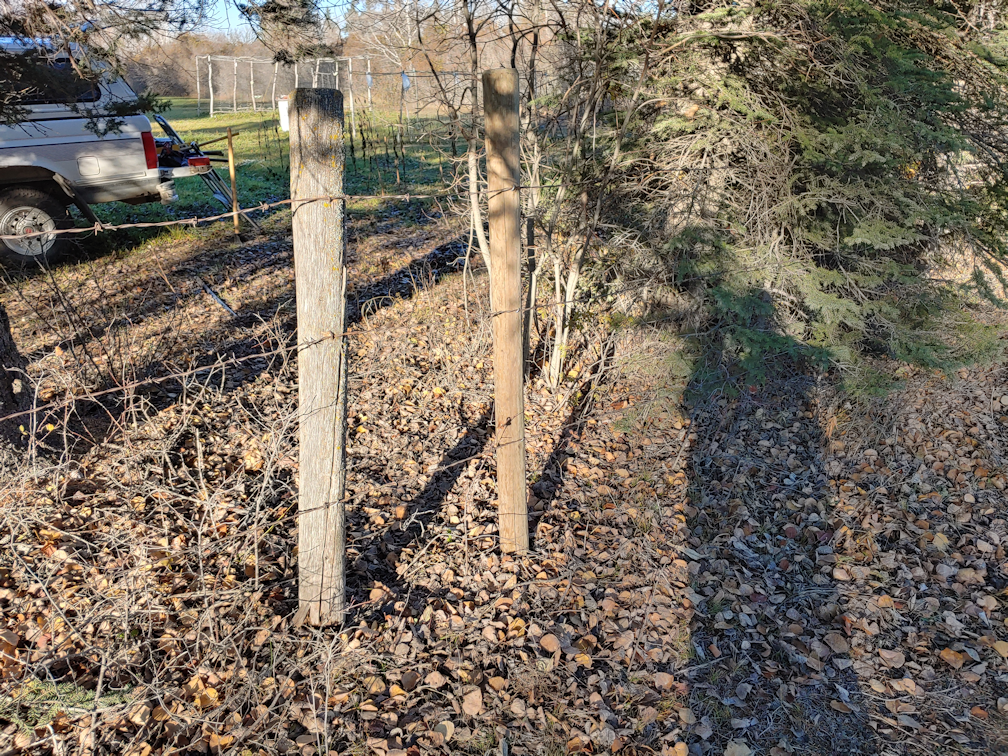 In this spot, the fence was so unsupported, my brother was able to lay the barbed wire on the ground, so it would be easy for us to cross the fence. After we were done and he was straightening things up, he installed another post. This time, I was able to provide the post, from the collection of fence posts I’ve been finding as we clean up. Just a couple of new posts, with the old posts keeping the barbed wire properly spaced, the fence is surprisingly more secured, and the wire was taught enough to actually make it difficult to slip between them as we crossed in and out!