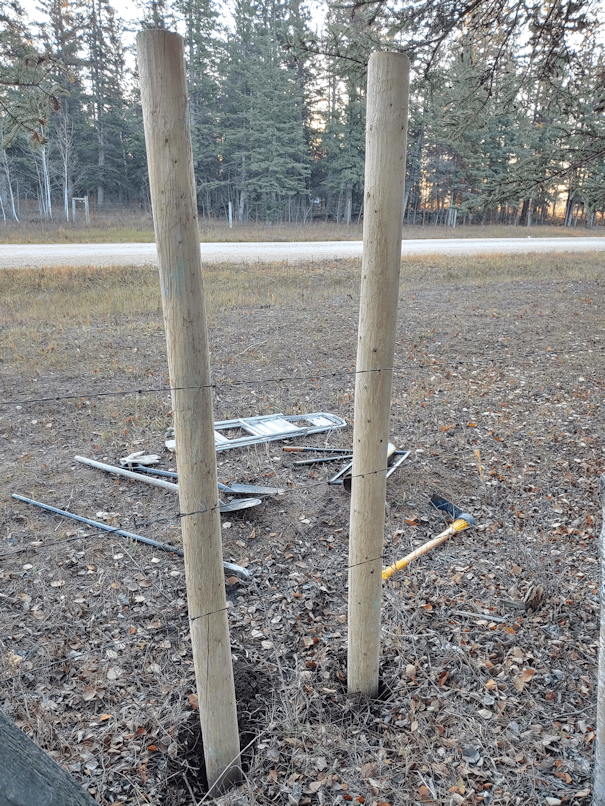 … in what seemed like the space of a heartbeat, installed a new fence post. The old one beside it is free floating; completely detached from the ground.