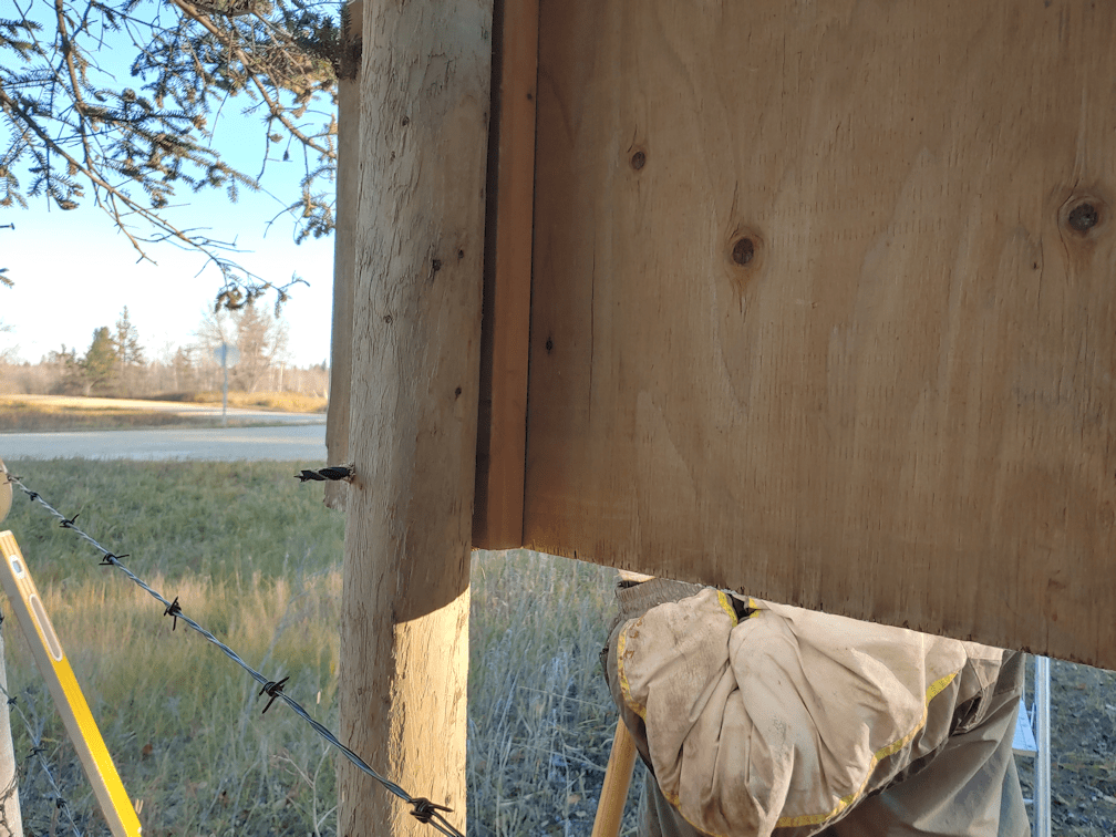 The area was pretty overgrown, and I worked on cleaning it up so we could access things. This also gave us a chance to take a good look at the corner post, which turned out to be quite solid. It’s just tilting. You can even see how one of the support boards has broken from the pressure!