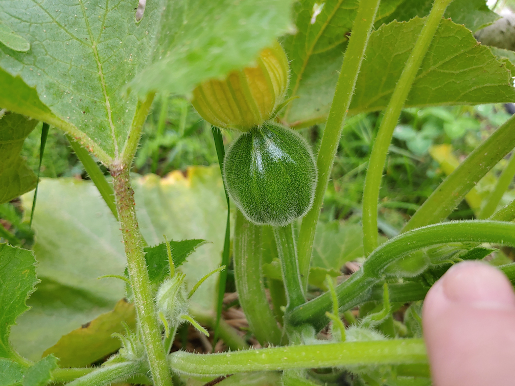 While it’s neighbour is getting bigger. We won’t have a lot of mature winter squash at the end of the season, but we might have at least the two of them before first frost hits. Which, I hope, will be very late this year!