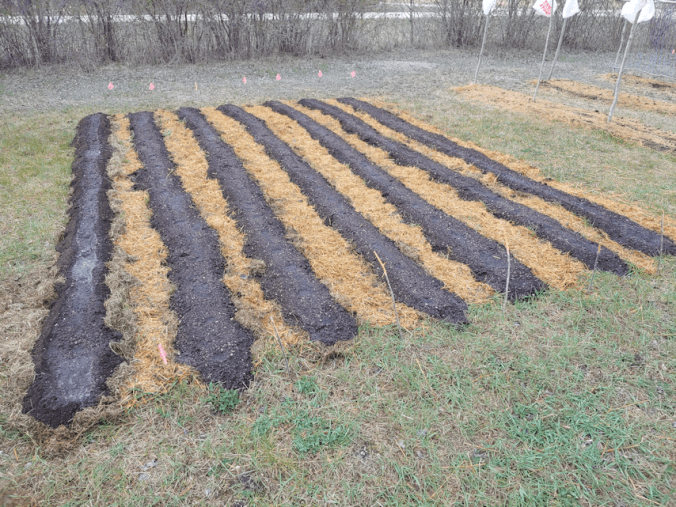 By deciding to put the soil over the grass clippings mulch, instead of the chopped straw, we lost a row – and it turned out there were enough seeds in the packet to need it! Since I’d soaked all the seeds, and I didn’t want them to go to waste, I made another row, instead. Once all the seeds were planted, I gave them another watering.