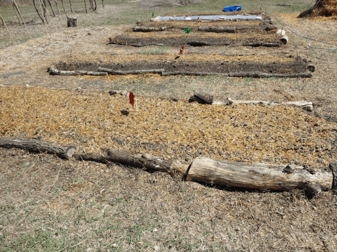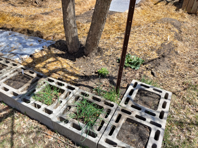 The blocks won’t be filled quite yet. I want to put some more organic material at the bottoms before returning the soil, and adding more, if needed. The ones we filled last year look like they could use some topping up, too.