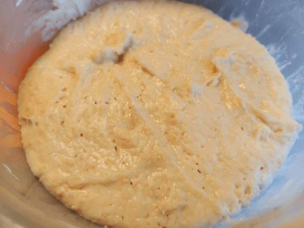 old dough set aside from previous bread baking