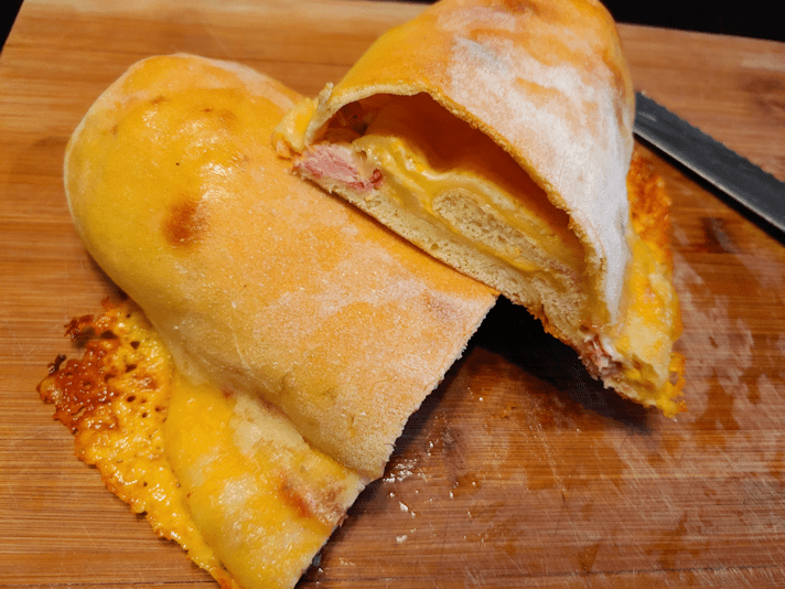 I did try and seal the dough well, but as you can see in the photo, the cheese still made its way out, and started bubbling in the middle!