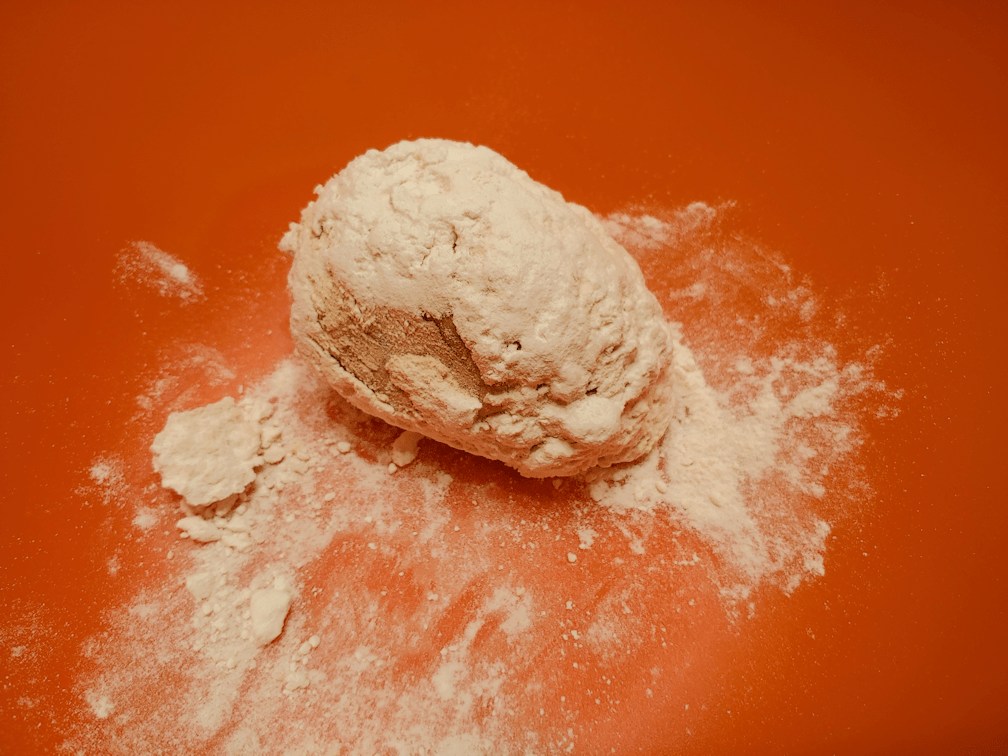 Which means that our dough baby has been sitting in its flour, unused, for several months. That’s one beauty of using this type of dough starter; it doesn’t need to be regularly used and fed, the way a wet sourdough starter needs to be, and will just go dormant.