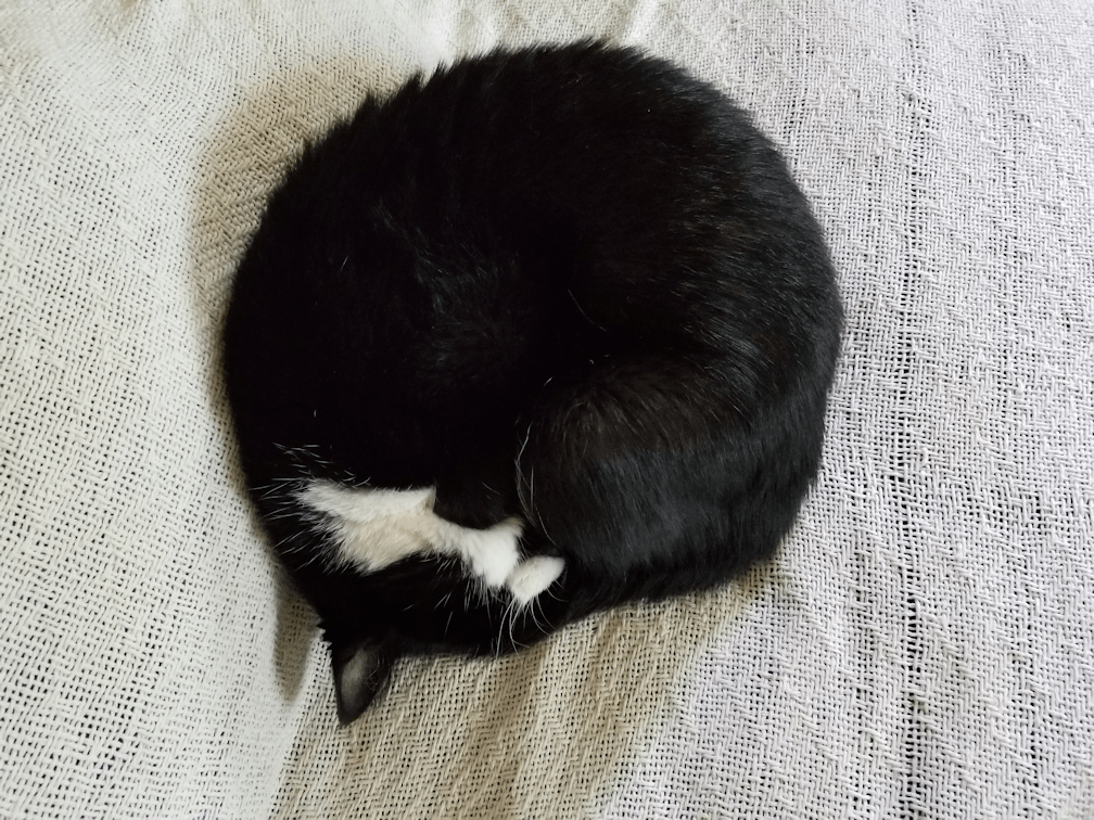 He then abruptly stood up, clambered up my shoulder, leapt across the chasm to my bed, and snuggled up to Fenrir.