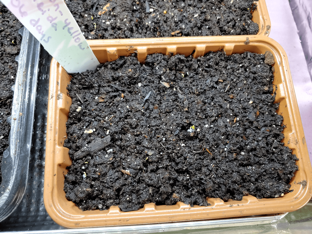 In the bowl are the last of the pelleted Kyoto Red seeds from last year.